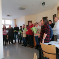 Zu Beginn gaben wir unseren neuen Bewohnerbeirat bekannt, der in dieser Woche von den Bewohnern neu gewählt wurde. Der Wahlvorstand (ebenfalls Bewohner) trug das Ergebnis vor und gratulierte den drei neuen Mitgliedern. Auch die Mitarbeiter gratulierten, wünschten viel Glück bei ihrer Arbeit und freuten sich auf die gemeinsame Zusammenarbeit mit ihm.