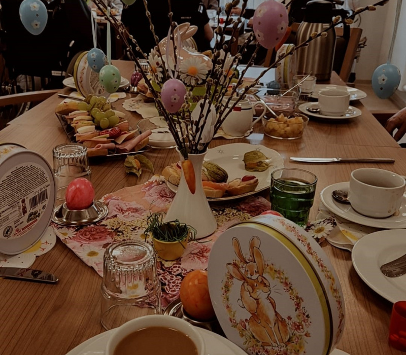 Am 19.04. wurde unser mittlerweile traditioneller Osterbrunch liebevoll mit vielen kleinen Überraschungen und Leckereien angeboten. Den Bewohnern hat es sehr gut gefallen wie auch die Osterandacht am 21. 04. von unserem Pfarrer Süpke.
