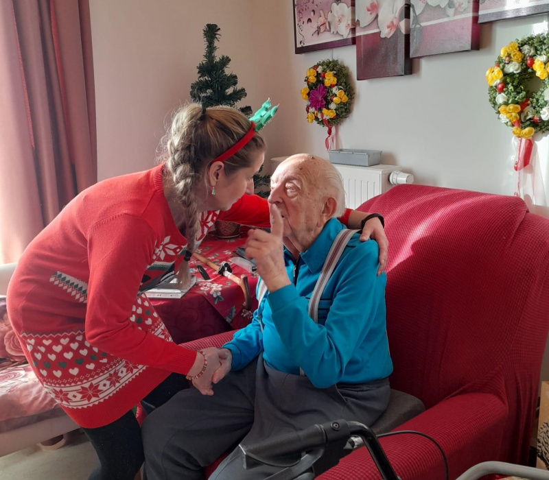 Zur Weihnachtsfeier besuchte uns der Drehorgel Mann aus Erfurt, der Weihnachtsmann mit seinen Helferlein brachte die Geschenke und die Rassenborger Menschenkinder( 2 Herren) überraschten uns und sangen mit den Bewohnern.