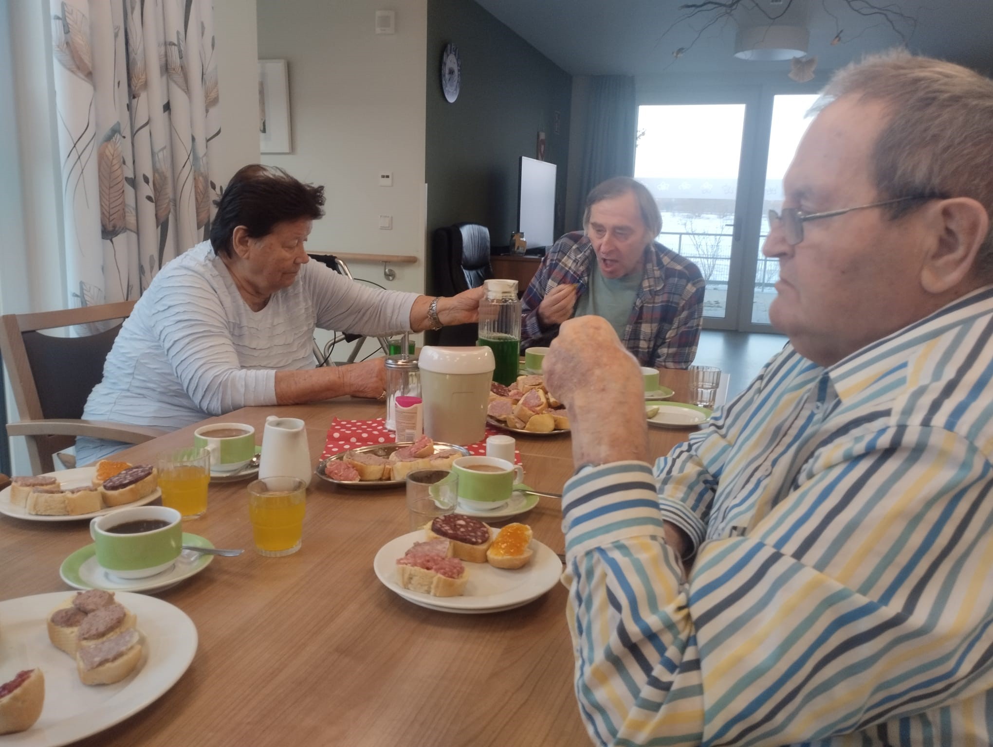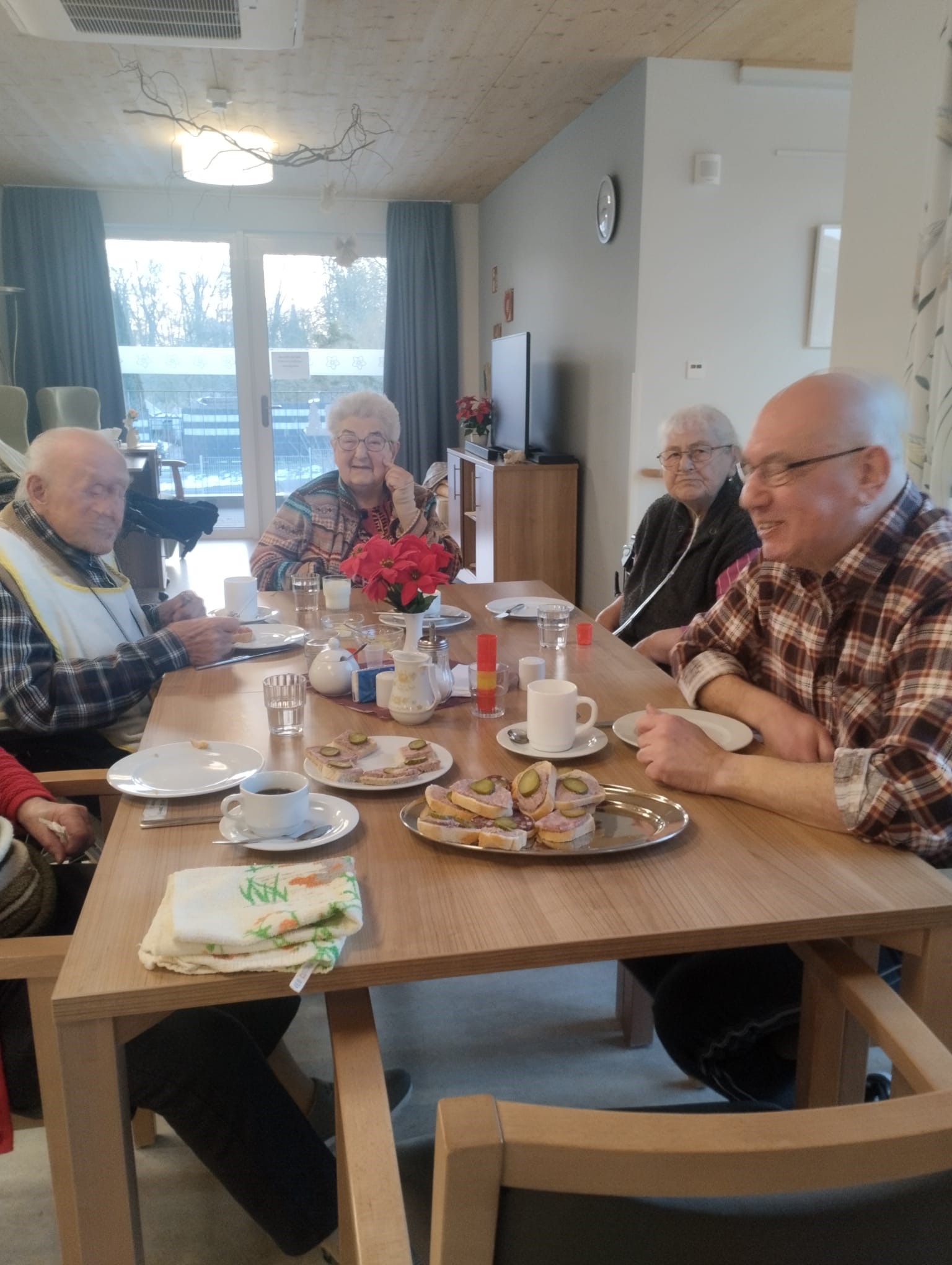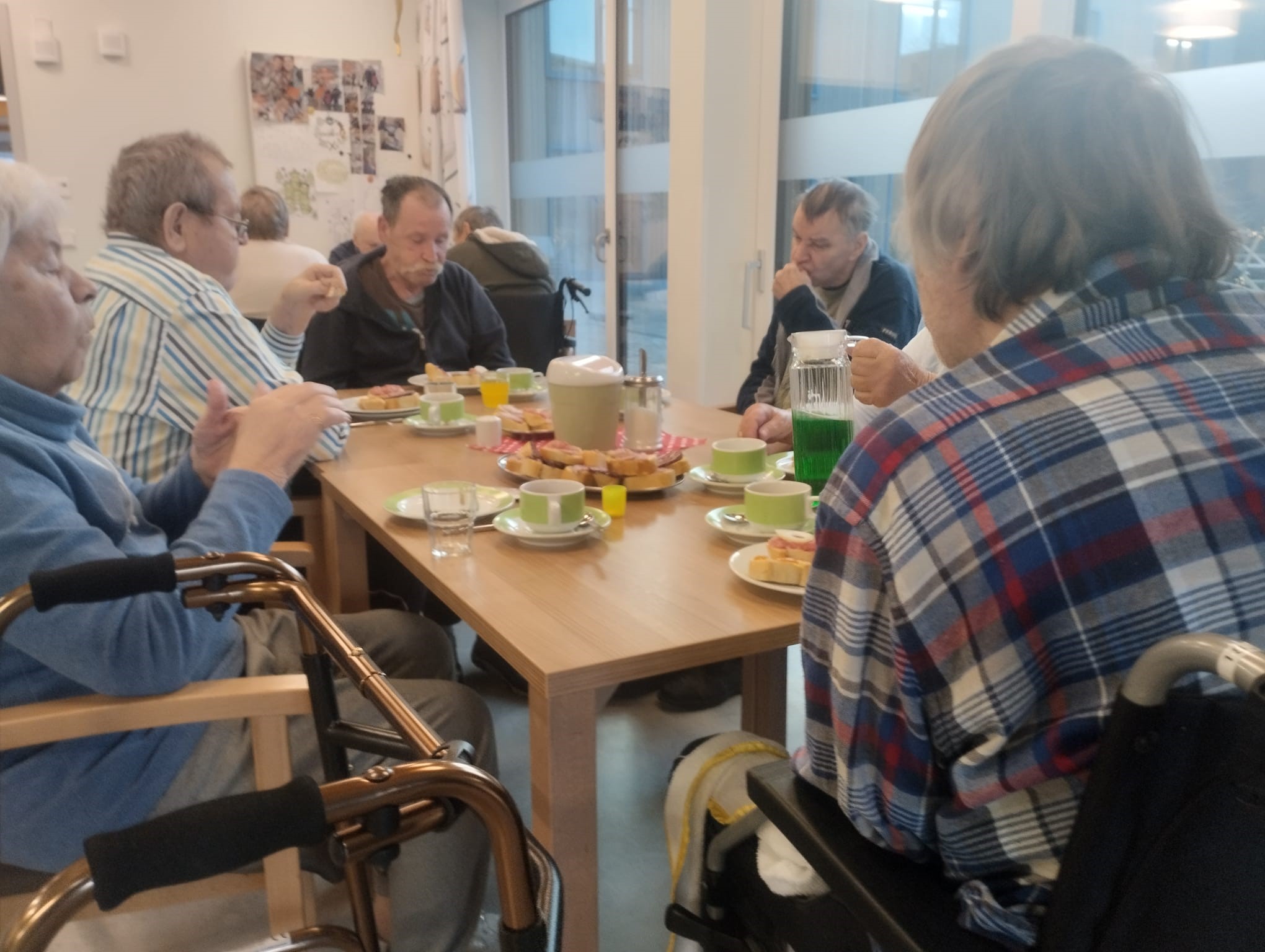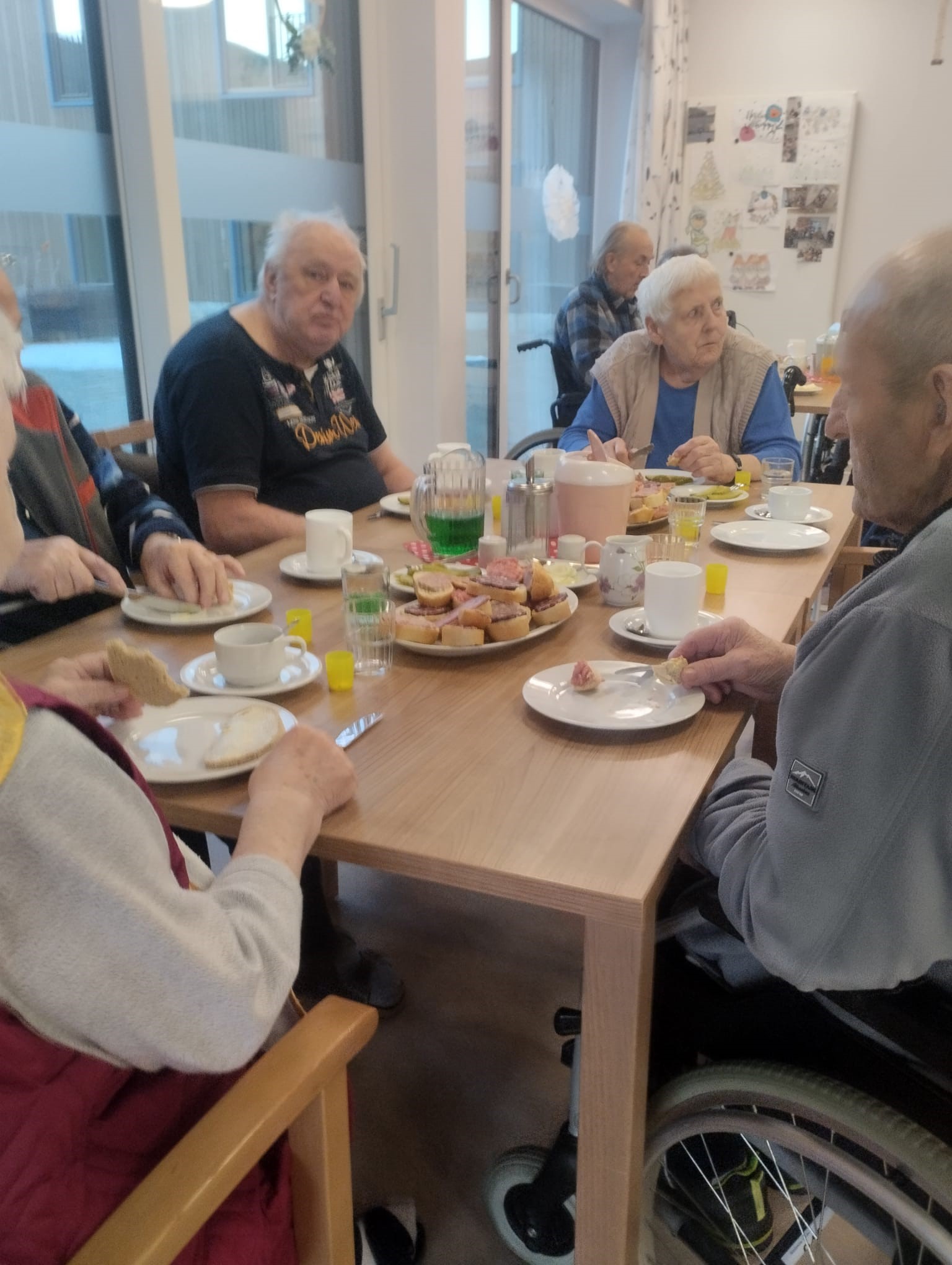 Los ging es mit einem kräftigen Frühstück, danach wurde gemeinsam ein Film geschaut und über alte Zeiten gesprochen. Unser Bewohner Herr Höpfner erzählte aus seinem Berufsleben und ließ den Ablauf einer traditionellen Hausschlachtung wieder lebendig werden – viele Erinnerungen kamen hoch.