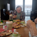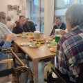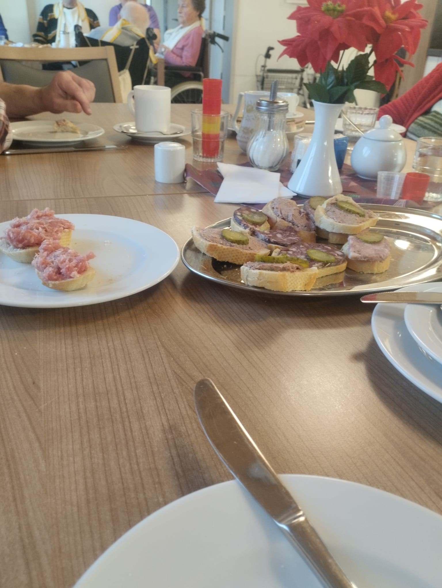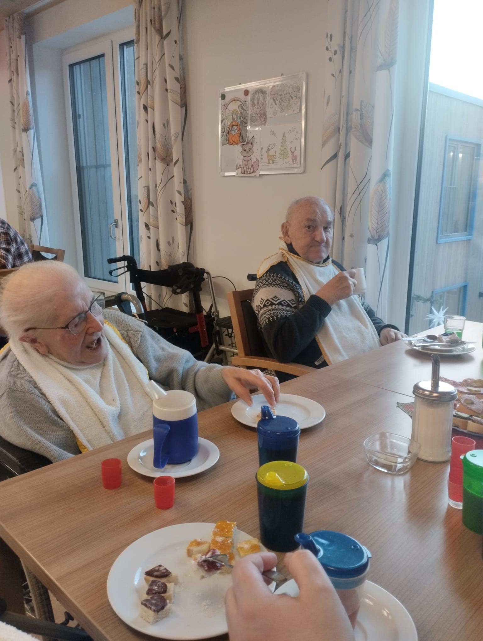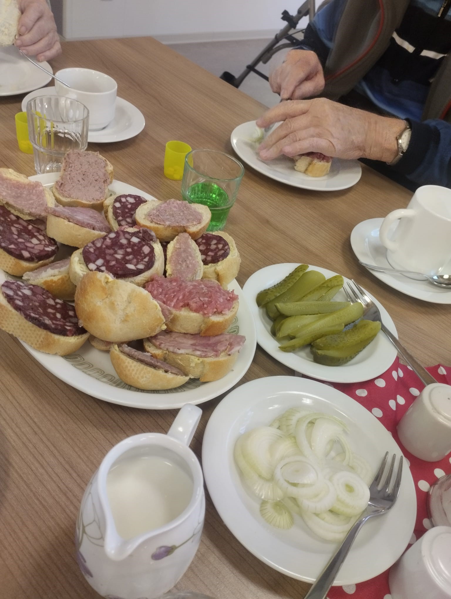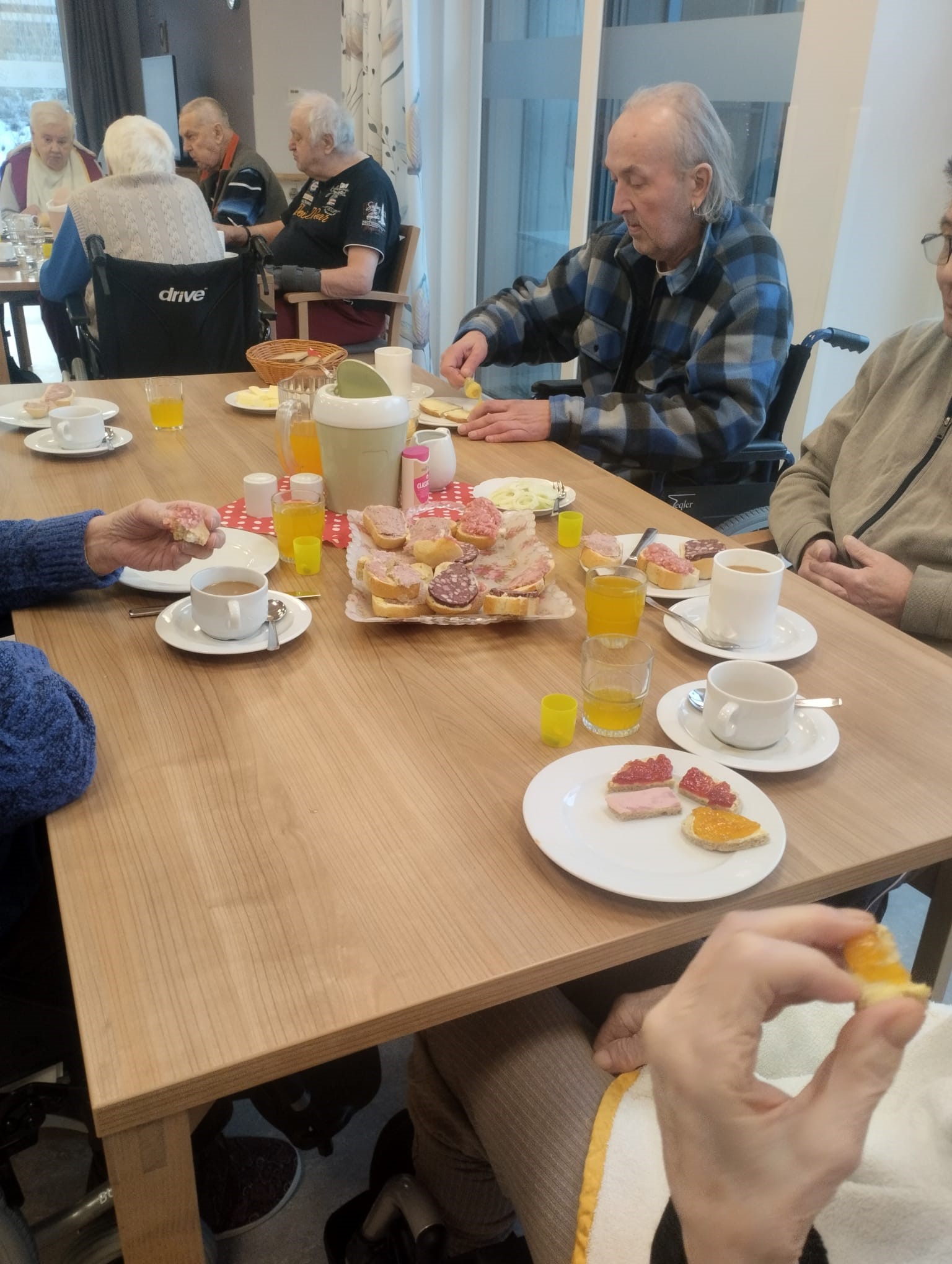 Los ging es mit einem kräftigen Frühstück, danach wurde gemeinsam ein Film geschaut und über alte Zeiten gesprochen. Unser Bewohner Herr Höpfner erzählte aus seinem Berufsleben und ließ den Ablauf einer traditionellen Hausschlachtung wieder lebendig werden – viele Erinnerungen kamen hoch.