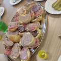 Zum Mittag gab es Wurstsuppe und Schweinshaxen mit Sauerkraut und auch am Abend wurde noch einmal hausgeschlachtet geschlemmt.