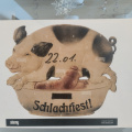 Mit originalen Schlachteutensilien wie Glocke, Seilen und Koben sowie leckerer Wurstsuppe wurde echtes Schlachtfest-Feeling geschaffen. Frisch Geschlachtetes kam von der Fleischerei Hellmund aus Großbrüchter.