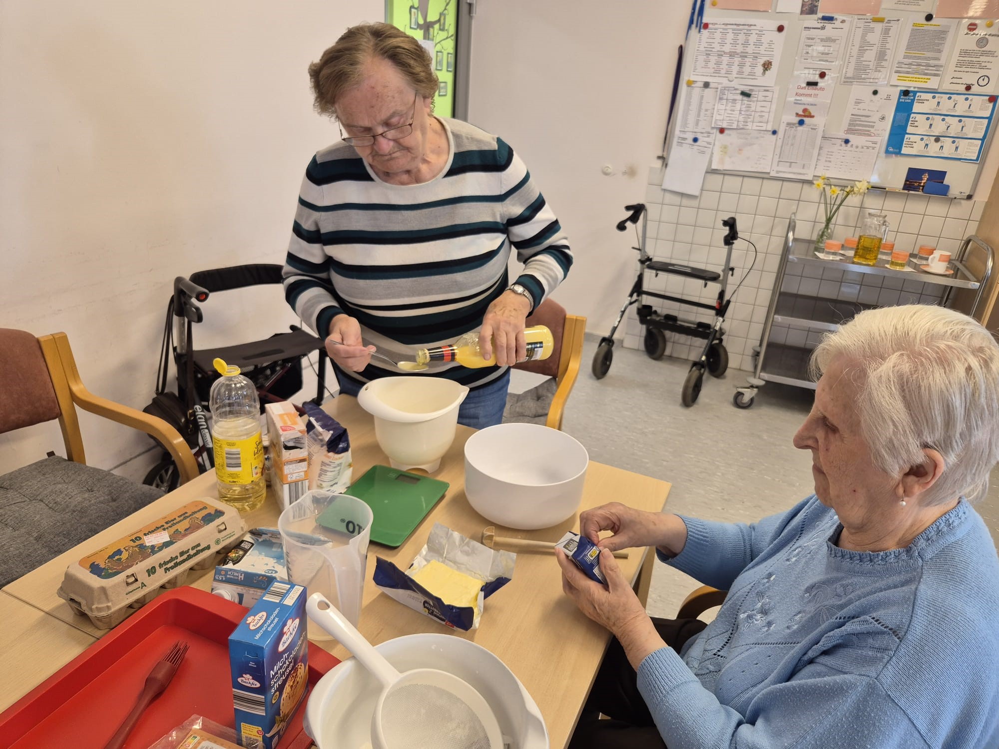 Auch beim Basteln und Gestalten waren wir wieder kreativ, und in der Küche ging es ebenfalls rund: Kuchen backen ganz klassisch – diesmal sogar ohne Mixer. Hat wunderbar geklappt und richtig gut geschmeckt!