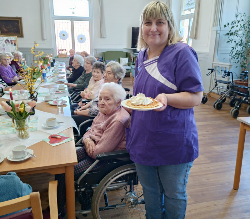 In der Beschäftigungsrunde stand Kreativität und Alltagshilfe zugleich im Mittelpunkt. Gemeinsam mit den Bewohnerinnen und Bewohnern wurden individuelle Menükarten gestaltet, die künftig täglich in den Wohnküchen genutzt werden. Ziel dieser Aktivität war es, eine einfache und übersichtliche Orientierung für alle zu schaffen – sowohl für Bewohner als auch für Mitarbeitende.